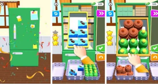 以物品归类整理为核心玩法的益智向单机手游,模拟日常收纳场景——如杂乱购物篮或冰箱内部。玩家需通过有限空位进行类型匹配与空间布局,克服移动限制、容量约束等机制障碍,在逻辑推演中达成秩序重构。通关反馈明确,成就感递进清晰,适合缓解焦虑、训练空间思维。