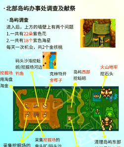 金核桃主要分布在姜岛各个区域,总数有130个之多。想要收集这些金核桃,你需要准备好各种工具,包括锄头、水壶、斧头、弹弓和鱼竿等,因为不同位置的金核桃需要用不同的工具获取。比如在沙滩区域看到特殊的标记或者图案,用锄头挖掘就有可能找到金核桃,而在树上看到的金核桃就需要用弹弓打下来。火山区域则需要用水壶浇灭岩浆来开辟道路,才能进入隐藏区域找到金核桃。