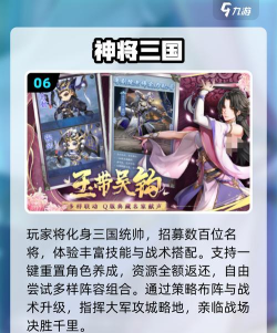 除了这是以三国为主题的卡牌手游,超多的元宝以及大家耳熟能详的神将,通过登录以后就可以获得,同时也是非常火爆的,具有技能颠覆式的搭配,以及武将变态式的合体。无论是大家熟悉的三国猛将,或者是美女武将,他们都可以通过不断强化战斗力的方式,带领着自己所在的队伍,拥有着传奇,你也有机会成为三国时期的主公。