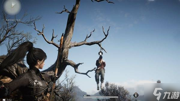 1、在乱葬岗界碑附近的树下,用弓箭射击绳子救下赵铁;