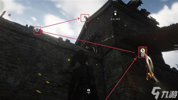 3、使用凌云踏登上城楼,放下吊篮接赵铁上楼;