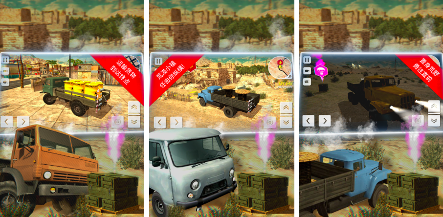 聚焦军用越野场景,设定于荒凉边境小镇。玩家需依据指令路线完成指定运输目标,在复杂路况中应对突发状况。车辆库收录KRAZ、KAMAZ、GAZ等经典苏制军卡原型,具备差异化底盘调校与载重特性。任务类型覆盖基础补给运输与高危化学品押运,考验玩家在极限环境下的应变能力与路线判断力。