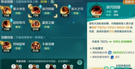 狂刃的核心技能包含星火冲击、剑刃回旋、流火之刃、战狂怒刃以及盖亚之盾,覆盖了伤害输出、控制干扰、生存回复和增益强化等多种功能。每个技能均设有两个不同的天赋分支,玩家可根据实际需求进行选择。天赋加点主要分为两类:适用于副本推图的输出续航流,以及针对PVP对抗的爆发控制流。在副本场景中,优先提升持续作战能力与清怪效率。星火冲击推荐点选“星火能量”,可在释放技能时概率缩短冷却时间,提升技能循环频率。剑刃回旋作为主要输出手段,建议选择“破锋剑舞”,显著增强技能基础伤害,面对群体敌人时表现尤为突出。