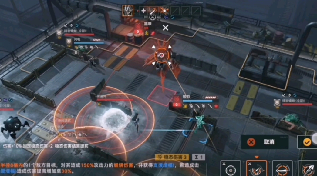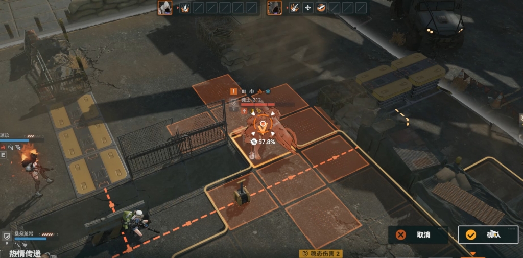 因此实战中要么绕开掩体发动攻击,要么先击破敌人的稳态再进行火力输出,或者使用范围伤害技能。稳态还有一个设定是如果攻击产生了克制,不论是属性克制还是武器克制,而且如果此次伤害能清空敌人稳态值,这次攻击将无视稳态减伤,近战角色在面板半身可翻越掩体时能起到无视稳态的效果。弱点分为属性弱点和武器弱点,属性伤害包括水冰雷火毒,武器伤害分为近战、轻型弹、重型弹、中型弹和霰弹,在角色血条上方能直接看到该角色的弱点。