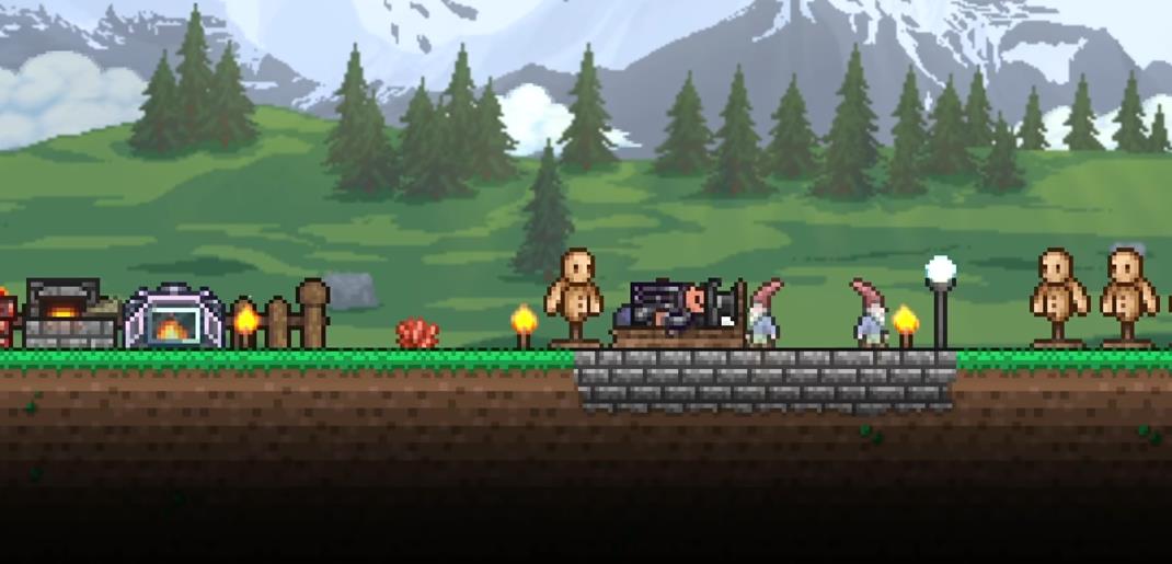 篝火是最为常见的增益型家具,可以不借助任何工具台用十个木材加五个火把合成。在放置的一百七十乘以一百二十五格的范围内,玩家会获得百分之十的生命再生速度,与零点五的每秒生命恢复。壁炉与其有相同的作用,不过所需要的材料则更多且复杂一点。手拿着棉花糖、鱼、肉等放在篝火上面,还可以将其烤熟,比生吃更有增益。向日葵一般都会刷新在普通草地上,树妖处也可购买,能够将其移植在家园附近。