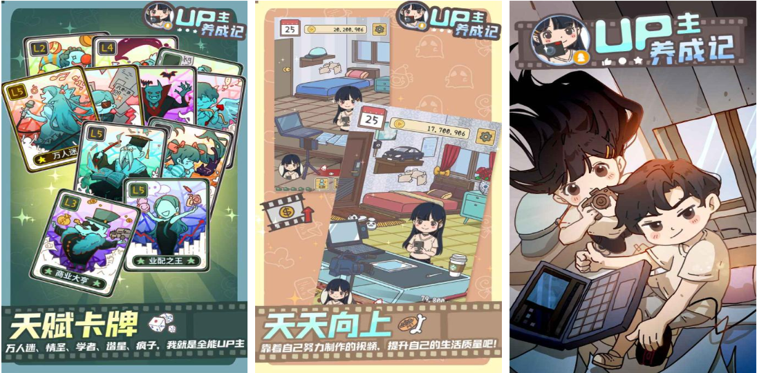 以短视频创作者生态为背景的轻量级养成模拟游戏,融合内容策划、粉丝运营、设备升级、题材试错等现实向经营要素。玩家从零起步组建个人频道,通过选题决策、剪辑节奏把控、热点追踪等行为影响播放数据与商业转化。卡牌化角色设定赋予UP主团队个性特征,美术采用低多边形+柔光渲染风格,视觉清新明快。任务体系强调阶段性目标引导,新手友好且具备明确成长反馈,适合碎片化时间投入。