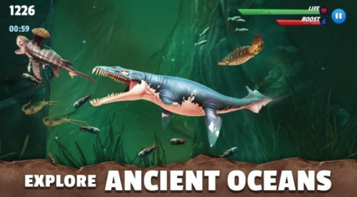 本作将背景设定于远古海洋生态体系,玩家扮演史前顶级掠食者,在广阔海底及可登陆区域展开生存挑战。邓氏鱼、蛇颈龙等标志性史前生物作为高威胁目标出现,需策略性规避;同时通过持续进食实现体型升级与能力解锁,逐步解锁更高级别鲨鱼形态。地图规模大、环境细节丰富,支持水陆双域探索,强化了沉浸式进化的代入感。