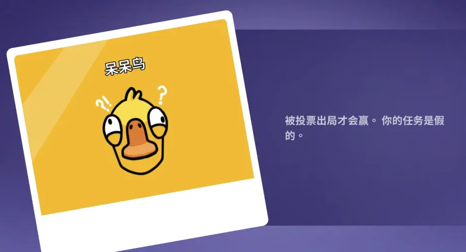 中立阵营虽不归属正义或邪恶任一阵营,但目标明确、操作路径独特。首推“呆呆鸟”——该角色无主动技能,胜利条件为被其他玩家投票淘汰。这意味着玩家需主动暴露可疑行为、引导讨论焦点,同时精准识别鸭子阵营成员,在不暴露自身意图的前提下诱导对方发起针对自己的指控。其核心难点在于平衡“可怀疑性”与“合理性”,既不能过于隐蔽失去存在感,也不能过度激进引发集体警惕。