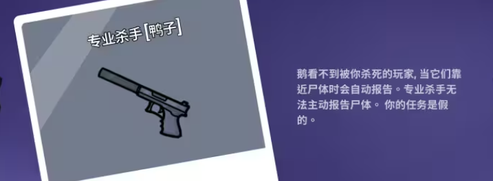鸭子阵营(即反派阵营)以干扰秩序、清除正义方为核心目标。“专业杀手”是最具代表性的输出型角色:拥有直接击杀能力,且击杀后可移动尸体。这一机制使其能有效干扰尸检流程、混淆死亡时间线。实战中建议优先选择落单目标,在击杀后立即拖移尸体至偏僻区域,大幅降低被当场指认的风险。