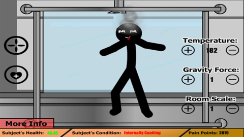 《火柴人刑讯室2》聚焦密闭空间内的交互式审讯模拟。内置老虎凳压力值调节、冰刑低温衰减曲线、电击频率与电流强度双参数控制。火柴人状态面板实时显示痛觉阈值、肌肉痉挛等级、意识模糊进度等数据化指标。所有刑具均按真实作用原理建模,反应动画基于生物力学算法生成,兼顾荒诞感与技术可信度。