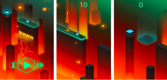 本作采用3D建模技术构建灼热熔岩世界,场景由几何块体拼接而成,整体色调以炽烈红橙为主,视觉张力十足。玩家操控角色在浮动岩台间连续跃迁,过程中随机生成尖刺、塌陷区、弹射板等动态障碍。所有位移均通过屏幕四向按键触发,节奏紧凑,反应要求高,需结合预判与即时操作,逐级跨越平台抵达终点。