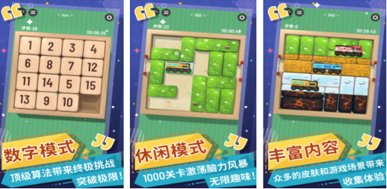 经典益智玩法数字化呈现,融合传统数字华容道与现代关卡结构。基础模式采用3×3至5×5数字方阵,初始状态随机打乱1—8(或1—15)数字排列,预留唯一空格。玩家仅允许通过上下左右滑动相邻数字块进入空格位置,最终将全部数字按升序归位。另设千余关休闲挑战,涵盖图形华容道、动物图鉴版等变体,持续激发逻辑推理与空间规划能力。