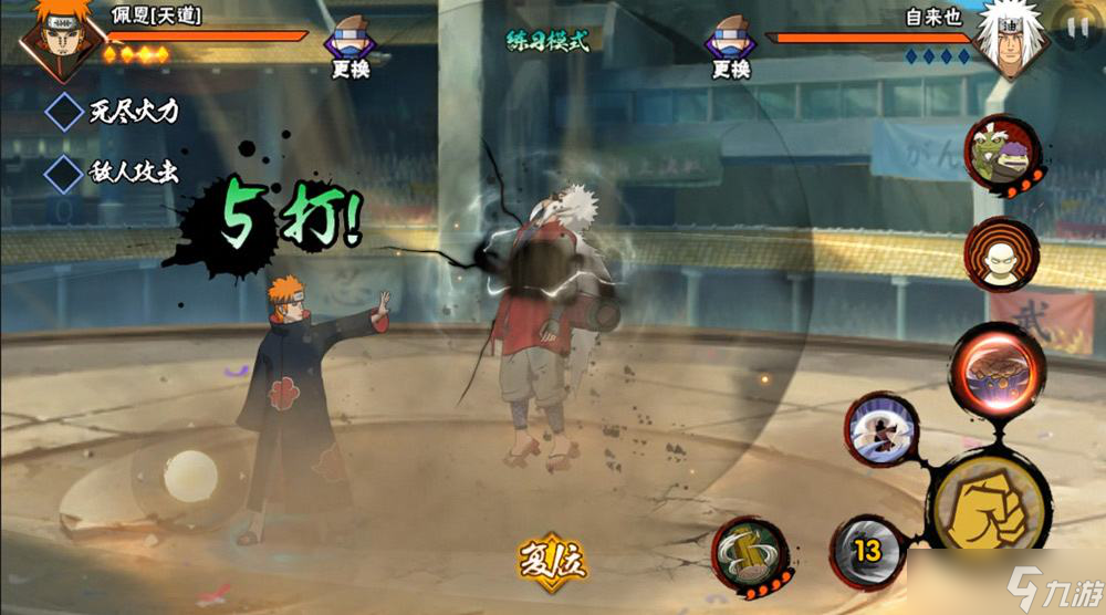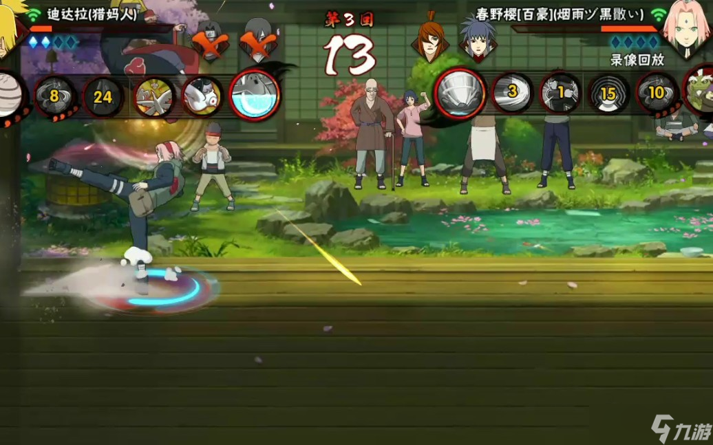 我们玩火影忍者手游的时候,走位很重要。说白了,走位就是骗对手,让他们以为能打到你,结果你却躲开了。要实现这一点,我们得有空间,所以一旦拿到节奏,就把对手拉到墙角打。墙角的好处是,对手替身之后,我们能在Y轴X轴随便走,他们放技能很难中,我们还能突然回头打他们个措手不及。熟悉了这一点,我们就能进阶精准走位了。