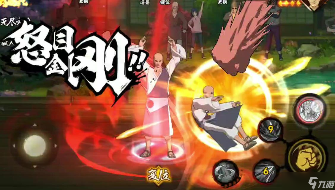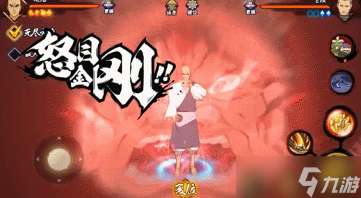 4. 大招千手杀很华丽查克拉变出千手观音,再变明王怒相,金色查克拉拳头快速攻击。招架成功后进入发怒状态,按奥义立刻释放怒目金刚,红色拳头持续攻击。发怒状态时还是招架姿势,有霸体效果,能反击或躲避技能。
