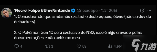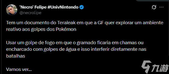 今日,经常分享任天堂资讯的知名巴西爆料人@NecroFelipe分享了有关《宝可梦》第十世代新作的爆料。