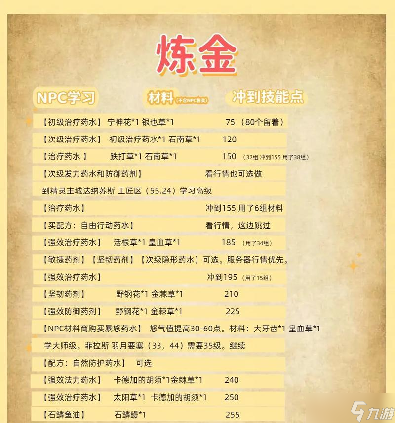 新玩家可以在训练师附近找到一片适合练级的区域。推荐在以下地点练习炼金技能: