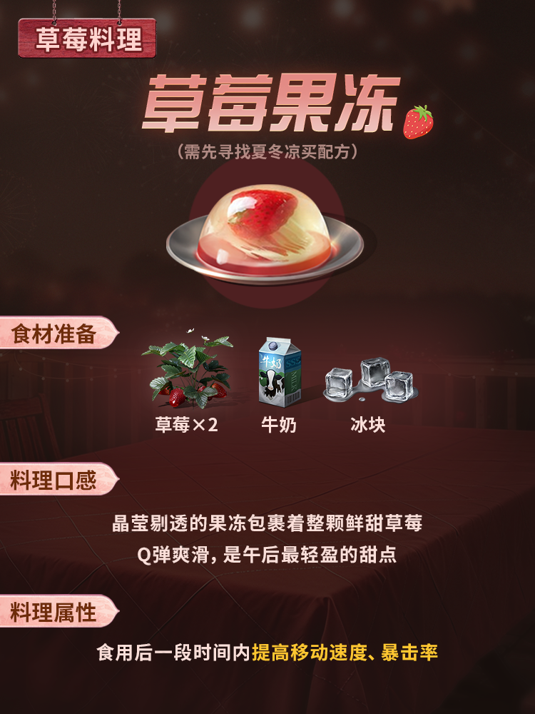 随着凛冬里的草莓迎来【有机赐福】这抹清甜的红色终于进化出了惊人的战力!明明也贴心地为幸存者们准备了草莓食谱滑动下方图片解锁有机草莓的隐藏力量.