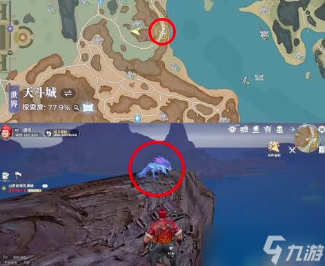 第六个位点,玩家需要前往天斗城的东北方向,抵达海边,在大地图上是有卷轴标明的,小编在图里也进行了标明,玩家抵达悬崖边之后就可以在这里直接拿到风笑天的最后一个记忆,而且这个点位没有boss镇守,轻轻松松就可以拿下。