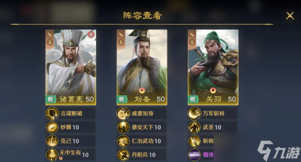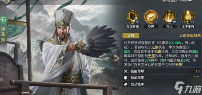 诸葛亮:主将,核心输出。其自带技能“妙算”可造成谋略伤害,若目标处于无策状态,伤害提升50%,且主将时有概率多次触发。