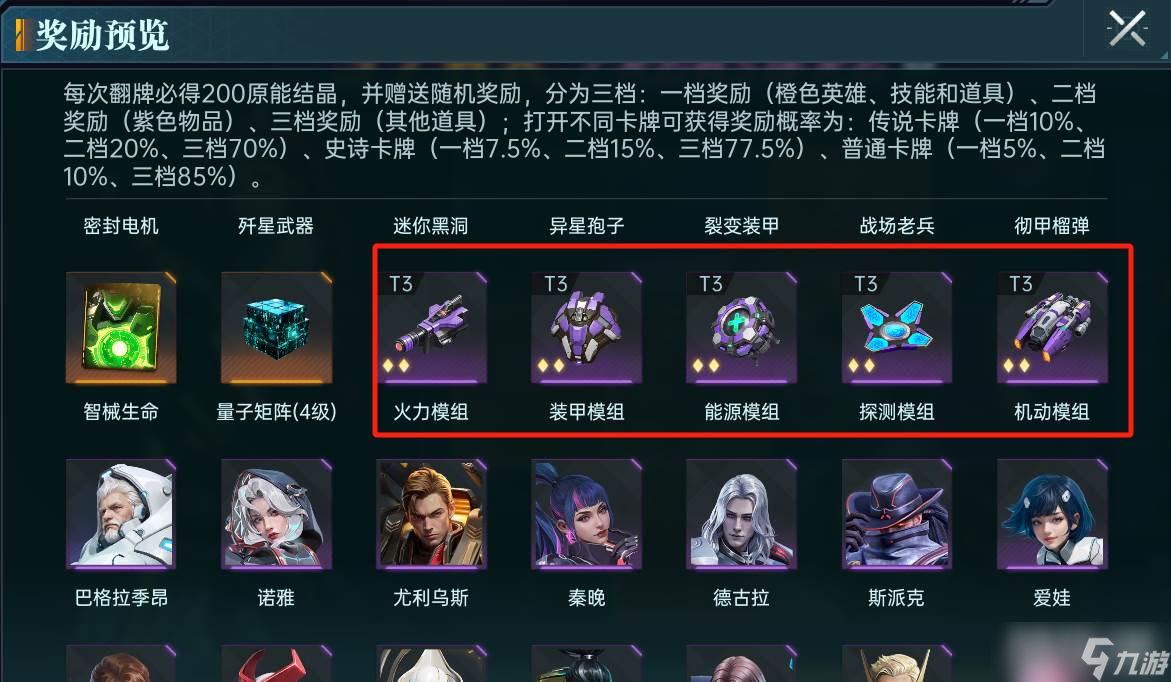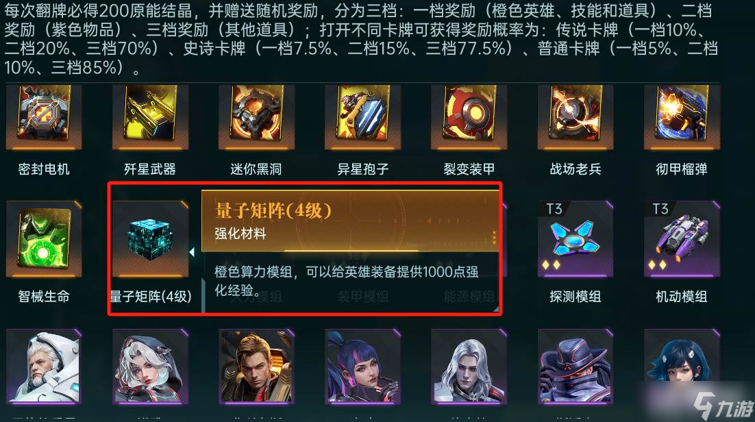 可以抽取经验药剂、原能结晶和量子矩阵,用于提升装备等级、英雄等级、技能等级等,提升战斗力,爆率与常驻卡池无异。注意该卡池还会产出4星量子矩阵,能大幅提升装备等级。