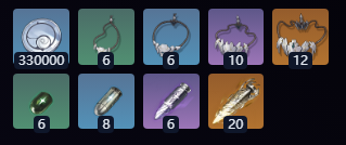 贝币×330000、破损隧体绳链×6、残旧隧体绳链×6、微损隧体绳链×10、完整隧体绳链×12、缺损聚燃体×6、余音聚燃体×8、残响聚燃体×6、回音聚燃体×20