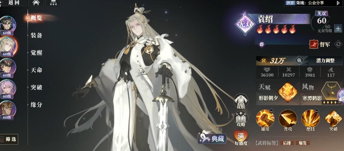 袁绍属于吕布体系的善后卡牌,本身不太适合作为主核输出培养,最多只能当做副输出。在问剑台等自动战斗里,优点是能防止关羽、张辽等这类,自动战斗锁最高攻击自动设置的角色。因为三火后召唤出的白狐会继承本体一点四倍的攻击,作为召唤往往可以替代团队里其他武将来被锁定作为目标。劣势部分是自动战斗里,我方也不能直接锁最高攻击力的角色,不然会出现孙权、蹇硕这类角色拉白狐的场面,不过合理配置自动战斗能规避该缺点。