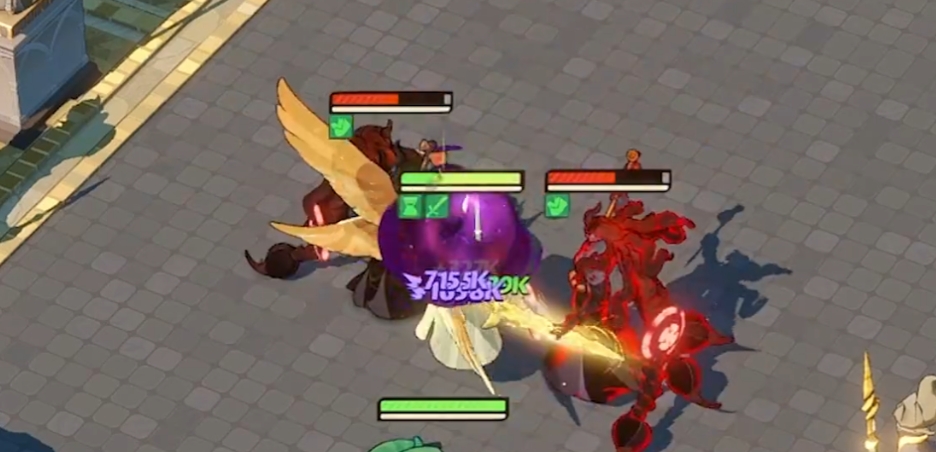 巴赫朗不仅拥有高额血量,还拥有真伤和独特的神临机制,开局巴赫朗会提升自己的血量上限,满血后他能获真伤、普攻AOE伤害和霸体等多种buff,目前他在经济场中的表现非常出色。巴赫朗的大招除了能显著提升坦度,还能让普攻打出真伤带顺劈的效果,他拥有三段血条,左边是初始生命值,中间是护盾,右边是增加的血量上限,大多数角色都需要攒能量开大,他要考虑的则是尽快回血填满右侧的空血条,这样就能进入永久生效的强化状态。