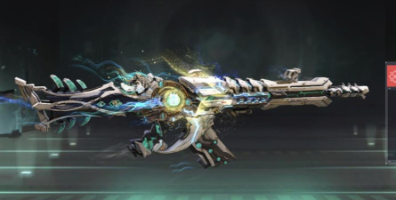 天策含光的构筑复杂而精妙,在枪身之内有着精密仪器的缓慢运作,仿佛蕴含着天地奥秘,这同时也是其核心动力,可驱动千机之变化,其左右两侧的能量槽化成光环的模样,寓意着无穷的变化和智慧。