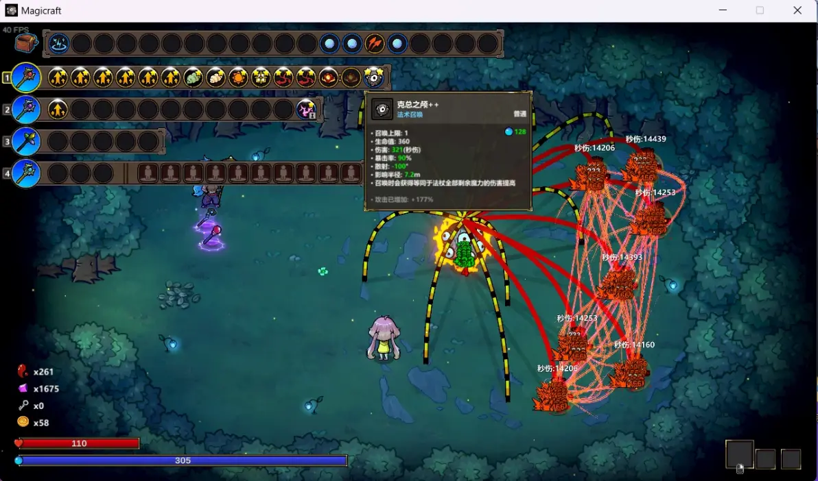 克总,手残+懒癌福音,进房间等待收割就行,大成后困难第三章BOSS关直接开隐身或者石化就能过,克总自带吸血BOSS秒不掉它。技能核心关键是范围(2级就够用),和引力牵引(2级够用,暴击越高越好,数量越多对小怪越强,但是对单无用,秒伤900+就可以碾压各种房间小怪),前期有这三个无脑用,随便一个法杖(蓝高优先,蓝量是提升克总的基础伤害,线性提升)召唤出来一直在,小怪基本都是秒。相当于有个自动清怪器,自动索敌,加多重攻击。配其他法杖建议高爆发的,滚石,大剑最优可以打作者抵挡弹道,可以说配万物。最关键的很多技能和爆发类不冲突,很好找。