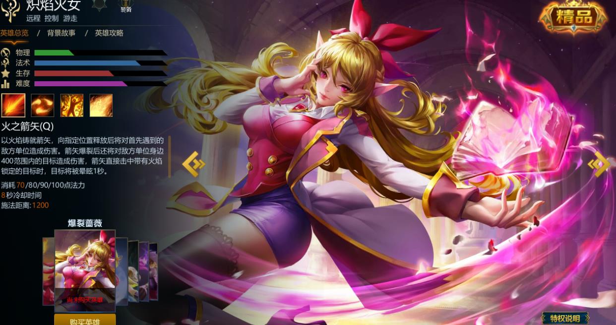 再配合上自己的普通攻击,便能卡在六秒结束前释放出火之箭矢,再造成一秒眩晕让伤害最大化。她前期的对线能力不算强,单打能力比较弱,一般是在有炮兵车的时候较队友来推塔。在第二波炮兵线过来的时候,就能压掉外一塔,根据对局情况看二塔好不好推。如果不好推进的话,就可以让队友去其他路线来寻找机会,自己守住一条线即可,支援的话需要将线给运到对面的塔下。