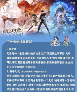 ② 新手入坑:强烈建议上半入坑。建议至少拿下00守岸人+01奥古斯塔。下半尤诺看剩余资源情况决定。珂莱塔/夏空/只抽尤诺入坑阶段不建议。