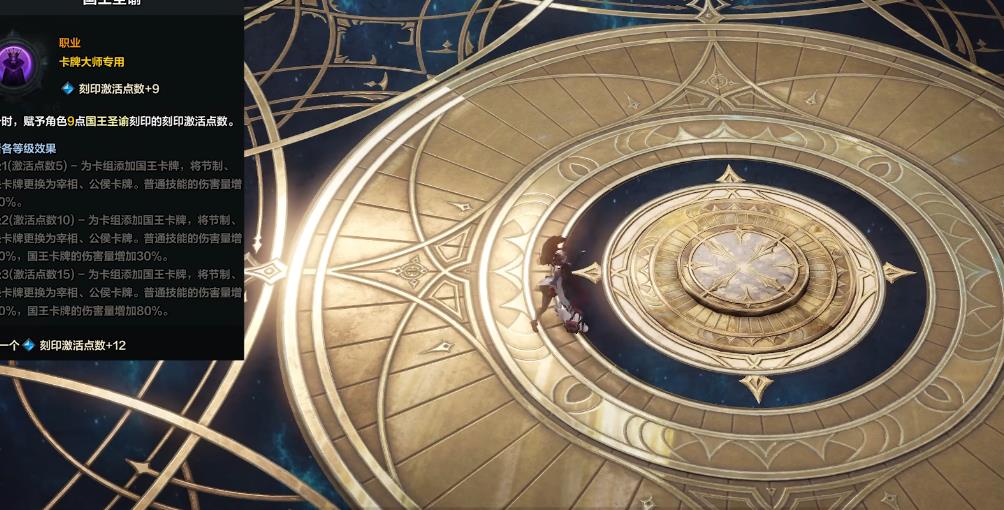 命运召唤在加满十级后是叠层技能,还能随机获得一张卡牌,一般都是用在天星牌雨前补层数,或者爆发技能打完后填充使用。牌刃流动虽然是个给天星牌雨叠层的技能,但是第二层三脚架可以给自己加暴击。如果能持续命中boss的话,该buff就可以维持一段时间,算得上是国王流卡牌在忽略卡组情况下爆发的核心技能。