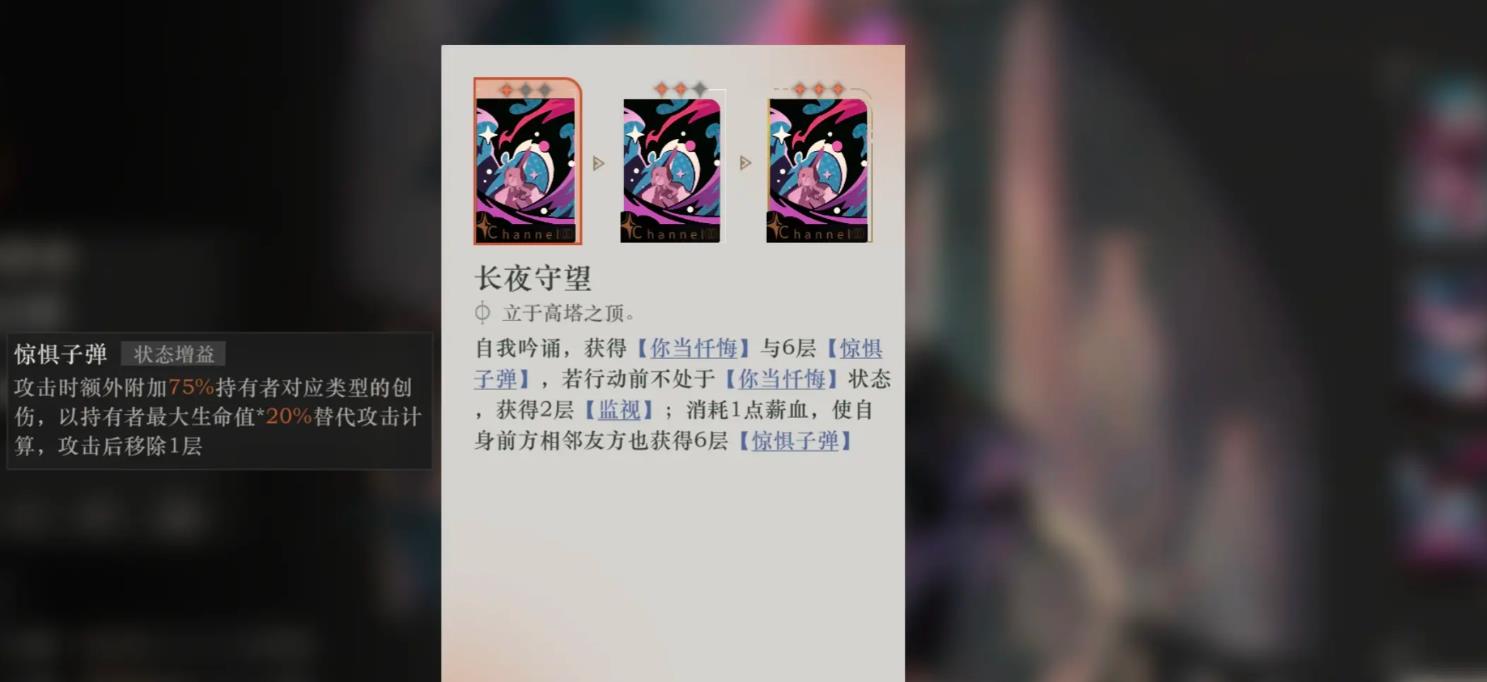 金色伤害都属于附加类伤害,在机制上与纸信圈儿提供的加成类似。角色在拥有惊惧子弹的时候,一次攻击即可让受到固定伤害为一的人多扣一点血量。如果有角色有群体攻击触发了该加成,便会对所有被攻击的目标造成附加伤害,具体的数值是由触发者面板来决定的,并吃到持有者在攻击时获得的所有buff。
