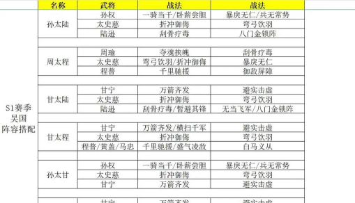 1、针对新手玩家不知道武将培养方向,建议前期容易快速成型的阵容搭配: