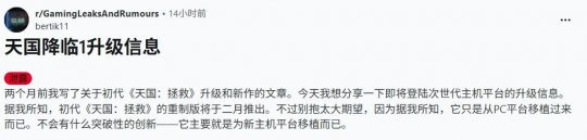 此前曾准确爆料战马工作室游戏消息的内部人士bertik11透露,《天国:拯救》升级版计划于2026年2月发布。