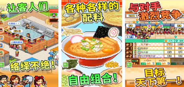 以经典像素美术风格呈现的日式拉面主题经营游戏。玩家需从零起步筹建拉面馆,精细调控面条筋度、汤底熬煮时长、叉烧厚度及溏心蛋火候等数十项参数,并依据地域顾客偏好动态调整菜单。系统内嵌员工技能树与体力值机制,支持多人协作排班;更设有拉面竞技场模式,与其他店主比拼人气值与评分排名。虽仅限方寸店面空间,但完整还原了选材、备料、出品、复盘的全流程创业体验。