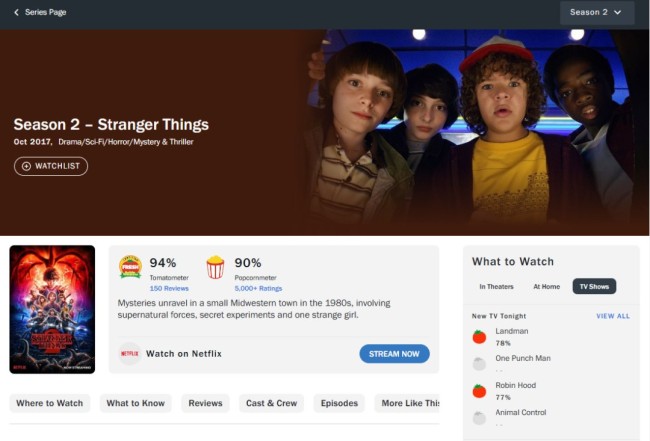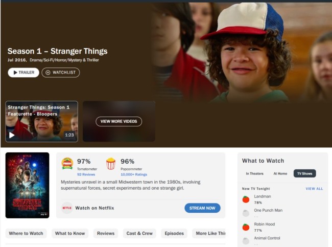 烂番茄《怪奇物语》剧集观众评分: