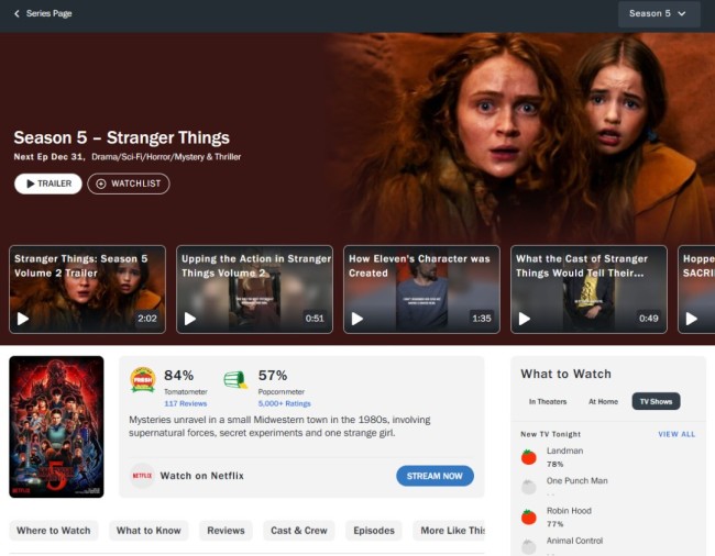 《怪奇物语》第五季烂番茄观众评价现已“腐烂(Rotten)”,根据烂番茄观望,第五季的观众评分只有57%,这在该剧历史上尚属首次。