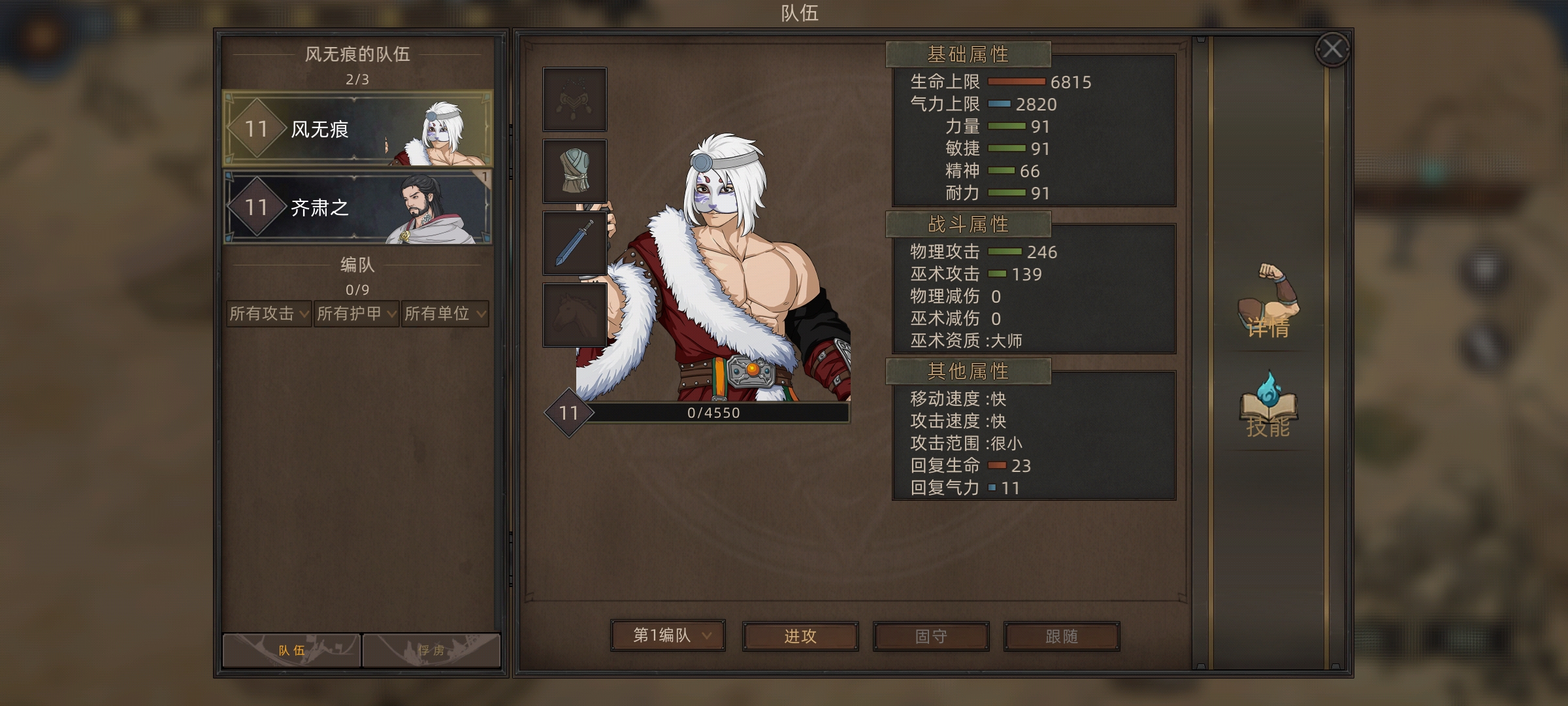 这里选了齐肃之,能打能奶还能降低敌人数值,然后能治疗部队重伤。最重要的是为了14天一次对话领取生命药剂技能,食用加500生命。综合一局下来两三百天可以为主角增加6k-1w点生命值。技能商店里还有三天刷新一次加30生命上限和10气力上限的资料书购买,你值得拥有。