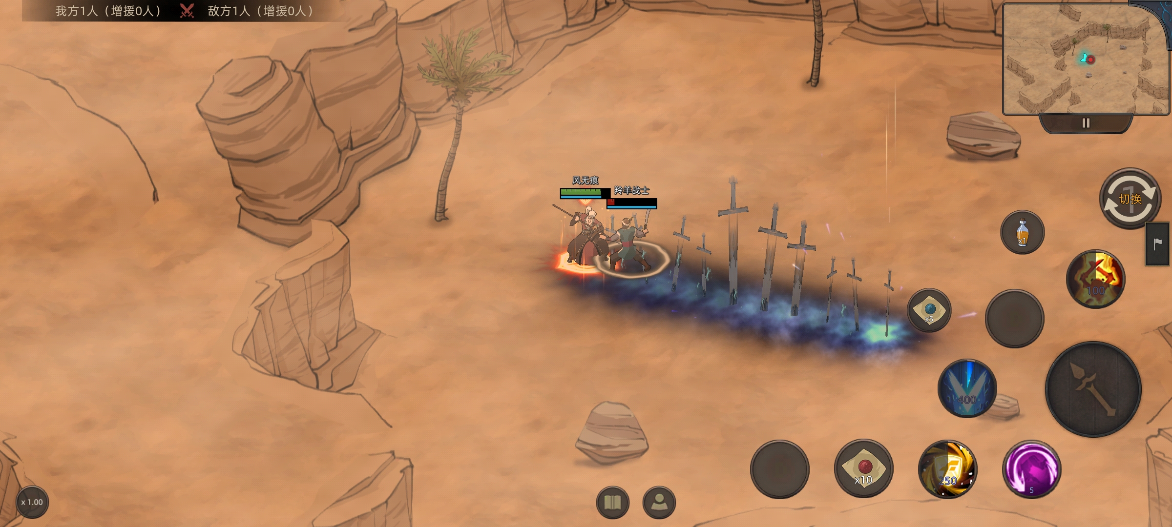 路上有野怪就揍他们一下,魔剑术技能真帅。