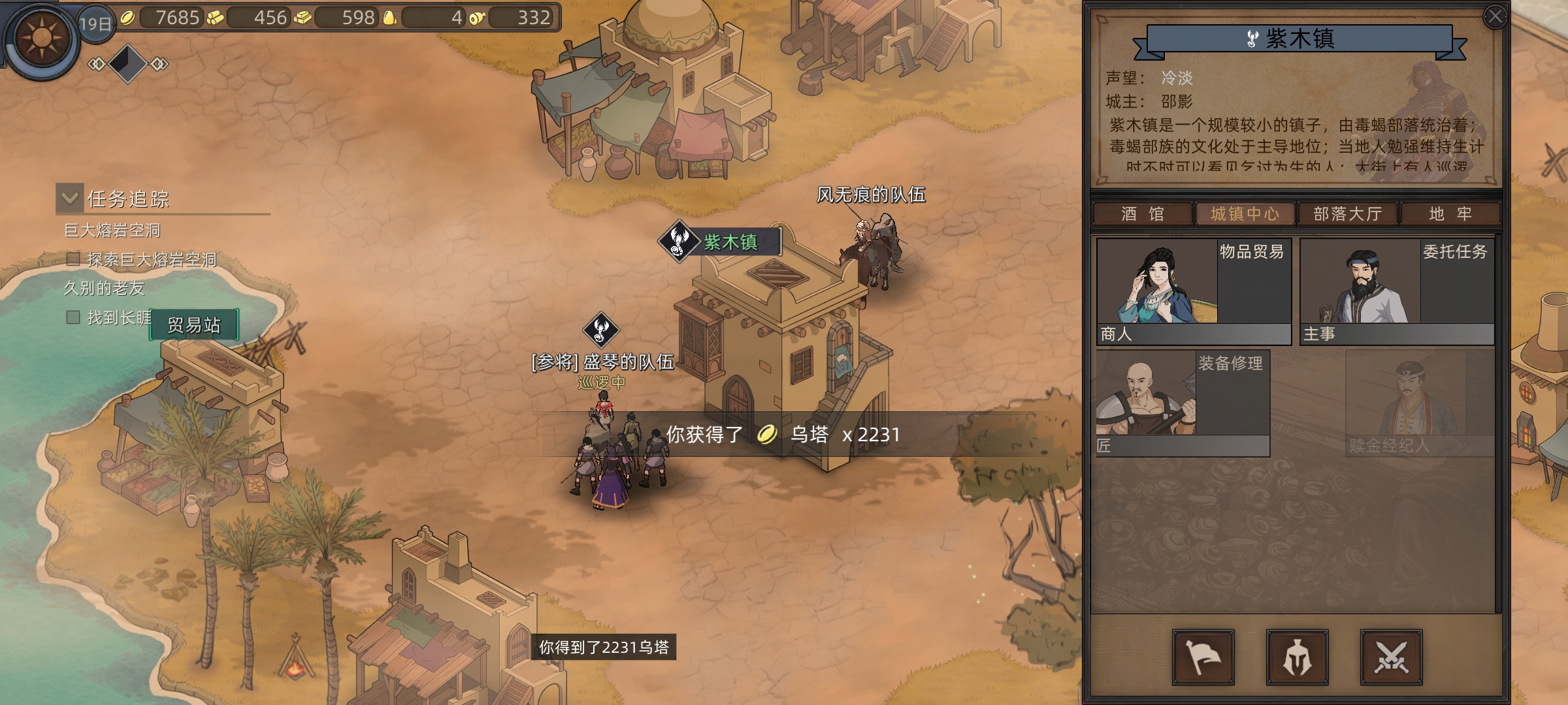 风无痕解除通缉后立马来到了旁边的驿马村这里主事领取了个找村民任务,顺便把之前副本掉的装备都卖出去,把驿马村商人手上一千多乌塔赚进袋里。这个时候我们主角身上就有两千多乌塔了,够交下个地区保护费了