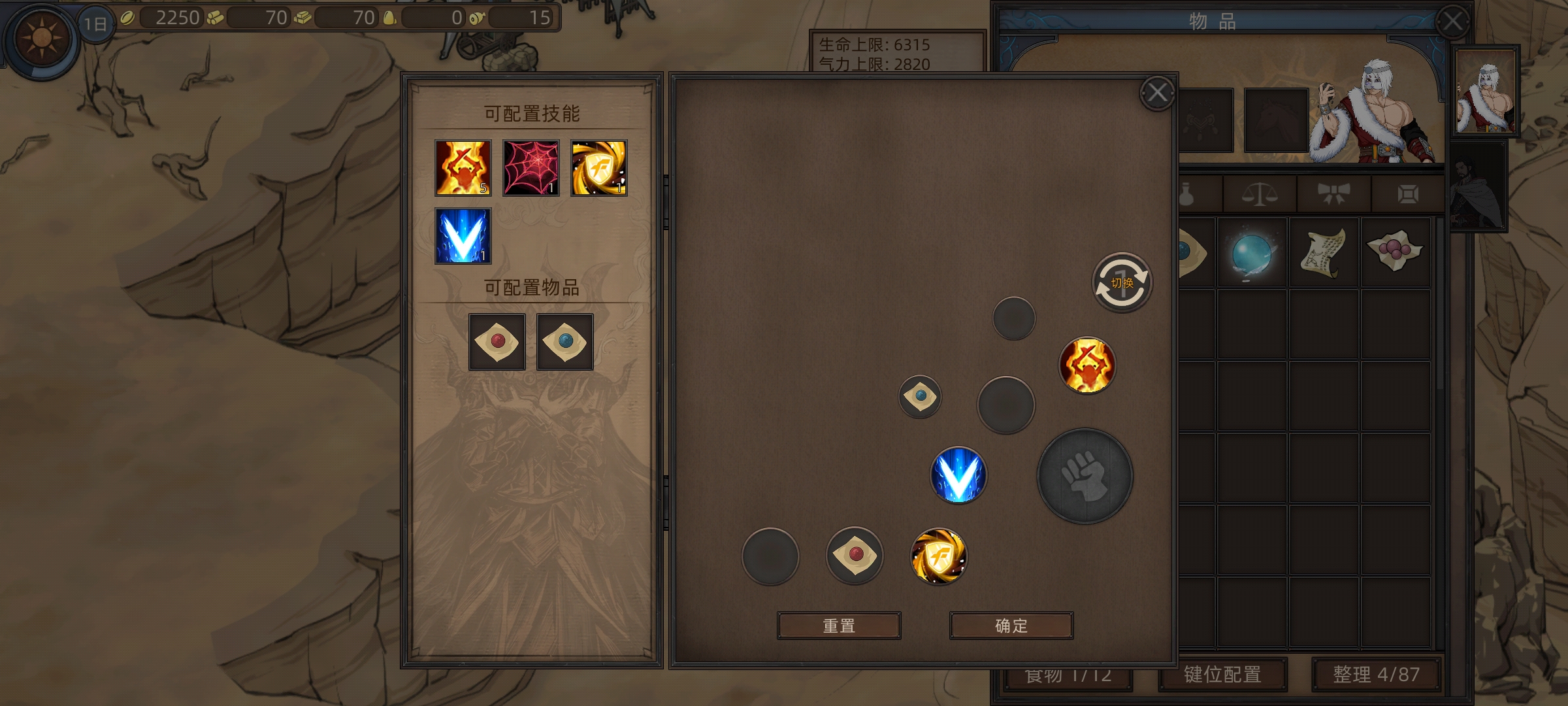 嗯,技能加完后我们打开背包,设置一下技能战斗按键位置。怎么方便怎么调,药剂也加上去。这里楼主的设置就是先开光环,然后给敌人来一套魔剑术,然后再变身狂战士上去平A。这样玩起来就特别有感觉了,不用一开始就平A。