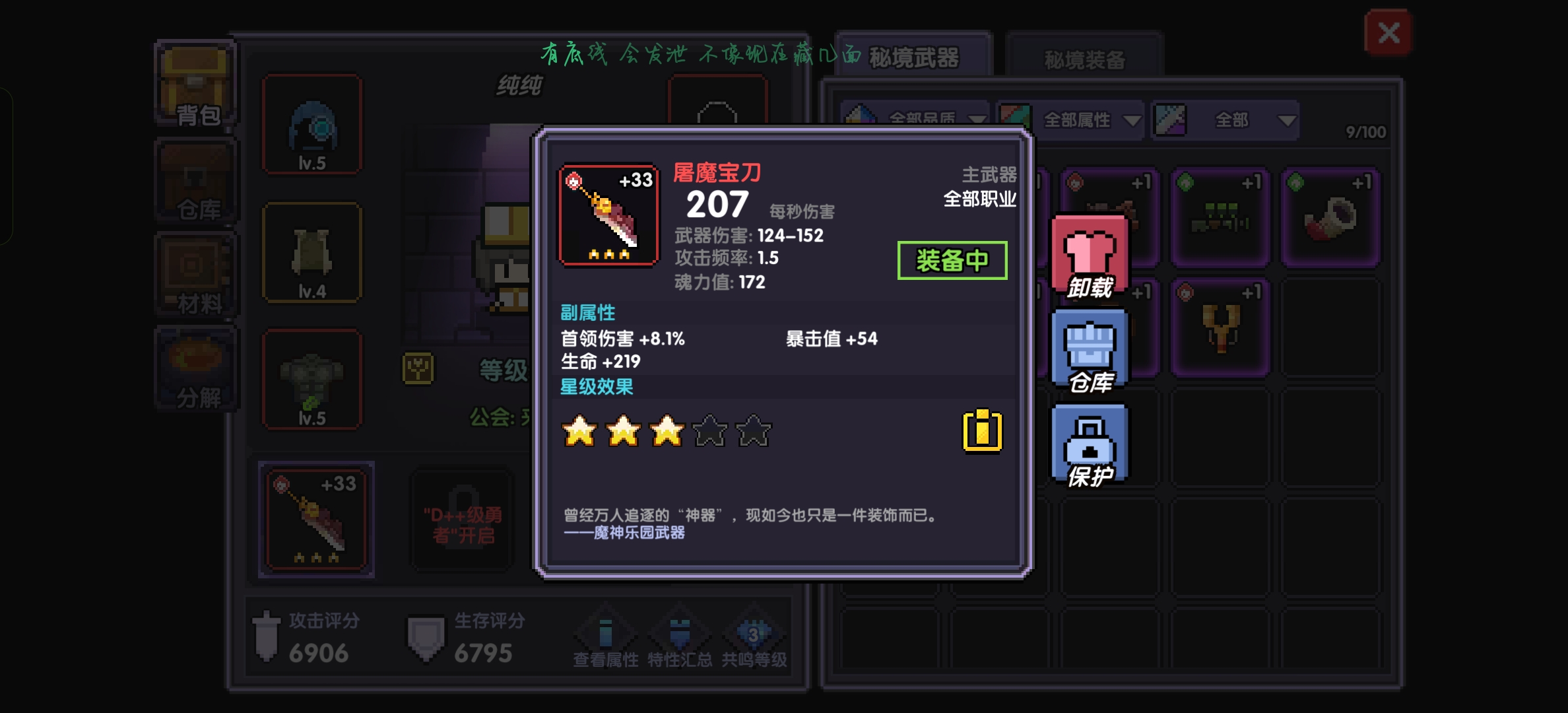 后续没有屠龙宝刀可以拿任意金色品质的武器即可,升级不超过四星即可