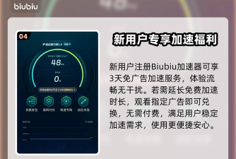 biubiu不仅性能强劲,在用户体验方面同样贴心周到,尤其对新用户提供了极具吸引力的福利政策。注册后即可免费领取3天无广告加速时长,畅享高速稳定的游戏环境。这份诚意满满的入门礼包值得与好友共享。即便试用期结束,也不必担心服务中断——biubiu支持看广告赚取时长功能,只需观看3条广告即可获得额外24小时加速权限,轻松实现持续加速,真正做到零成本畅玩。