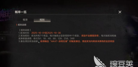 首先,普遍意义上说的内测奖励是指“涂鸦狂潮”这款枪皮,是ak47的一款臻品皮肤,并且在获得这款臻品枪皮时候会触发暴击,赠送奖池内剩余的未拥有的全部奖励。