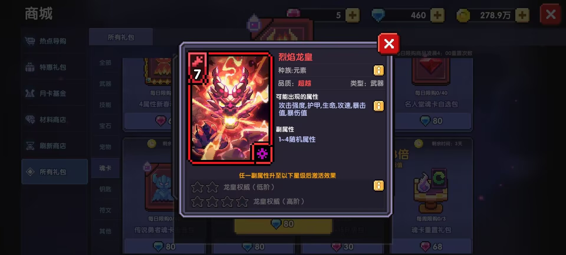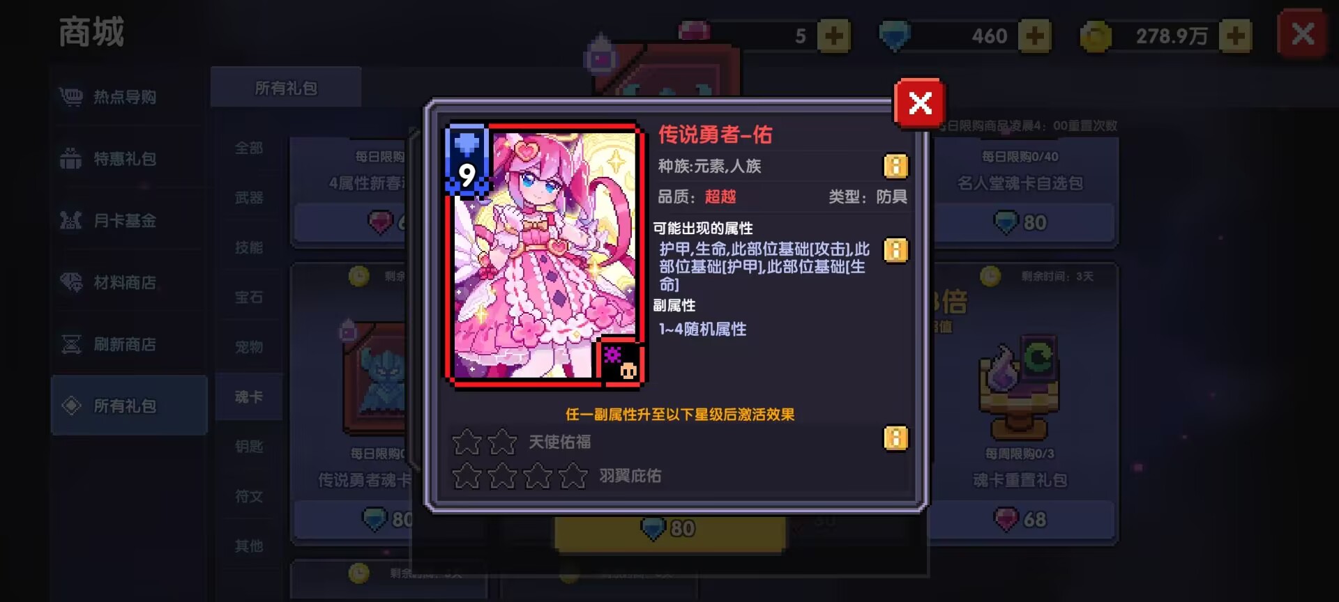 五:刷新商店里面的魂卡商店(建议大家看到了深渊猎人-龙息、堕落天使-昔拉、堕落天使-切茜娅、堕落天使-路西法、偶像克罗塞尔都可以买一下)