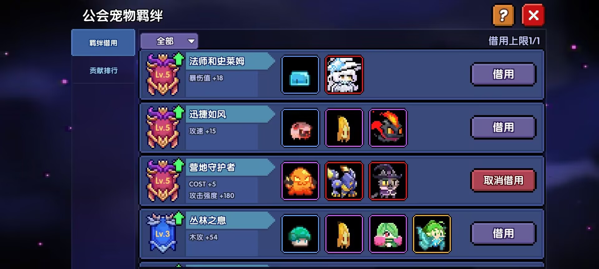 相信有的小萌新看到图片的65和别人的65COST会有点懵,满级不是60COST吗?他们的65COST是哪里来的,这里就得提到一个其他系统了——宠物羁绊、公会宠物羁绊。