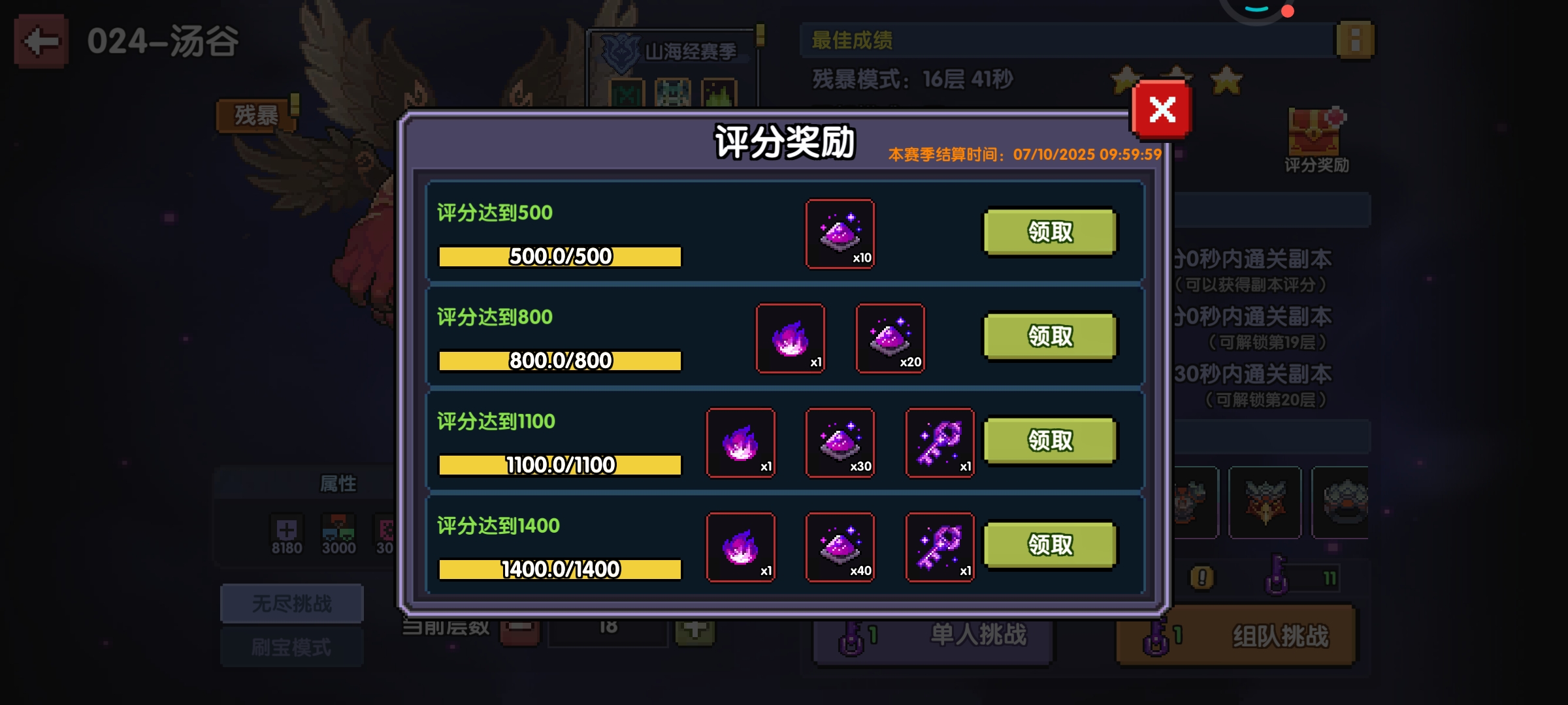 ※另外最好有大佬把其他副本带完拿完评分奖励,每个赛季可以领取一次,里面有很多混沌钥匙,所以建议萌新们在群里找大佬带带。(图10右上角的评分奖励里的奖励)
