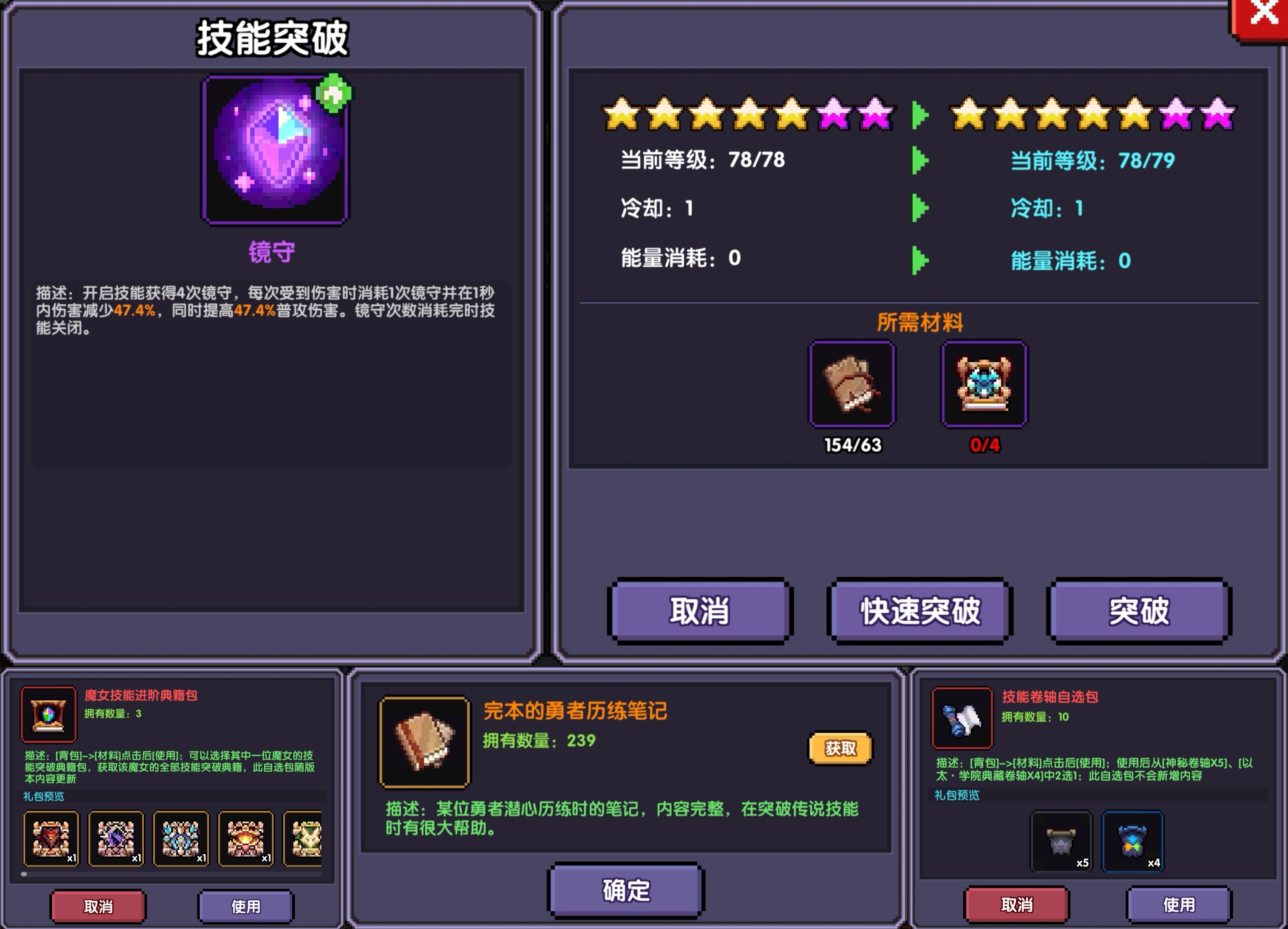 玩法也显而易见,专注升四本技能即可。升级其他的技能除了突破书是一对一的不会浪费之外,笔记、经验都会白费许多。