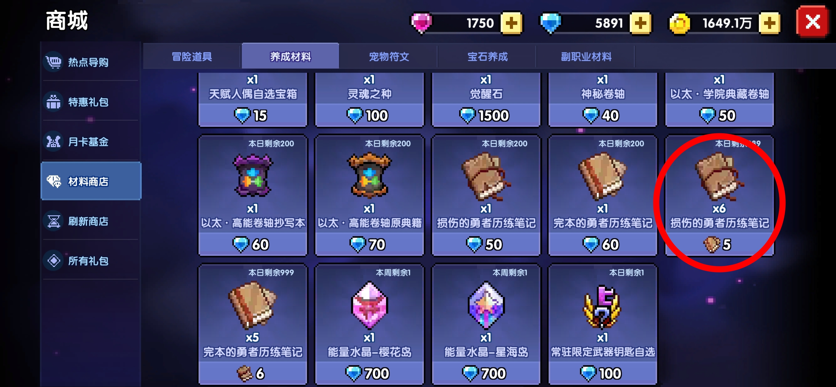 橙品质技能需要用完本的笔记,紫品质技能需要用损伤的笔记,它们可以在商店中自行互换(如上图)。